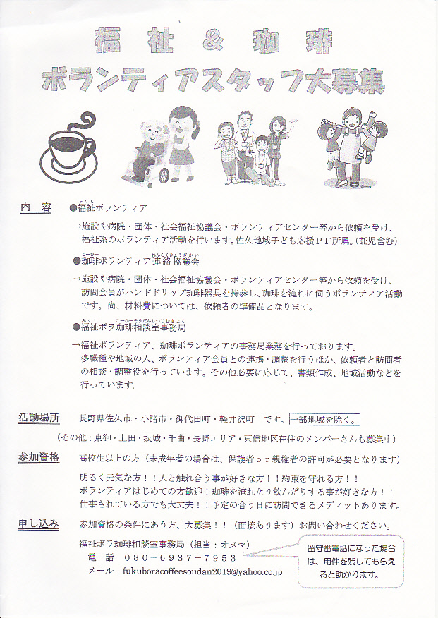 ボランティア募集や活動のPR、地域の困りごとなどお持ちください。