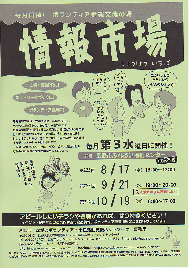 毎月第3水曜日に開催中の月例情報市場ですが、 9月から奇数月は夜間開催します!
