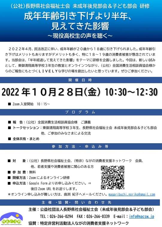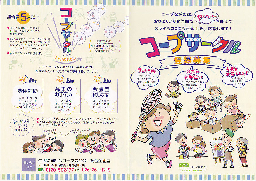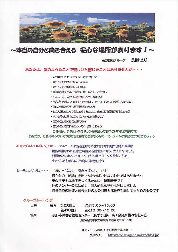 380-0813 長野県長野市緑町1714-5 長野市ボランティアセンター内 TEL 026-227-3707 FAX 026-224-1513 facebook始めました