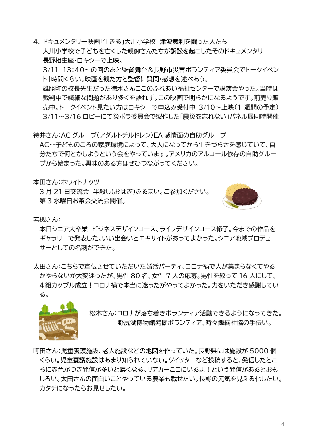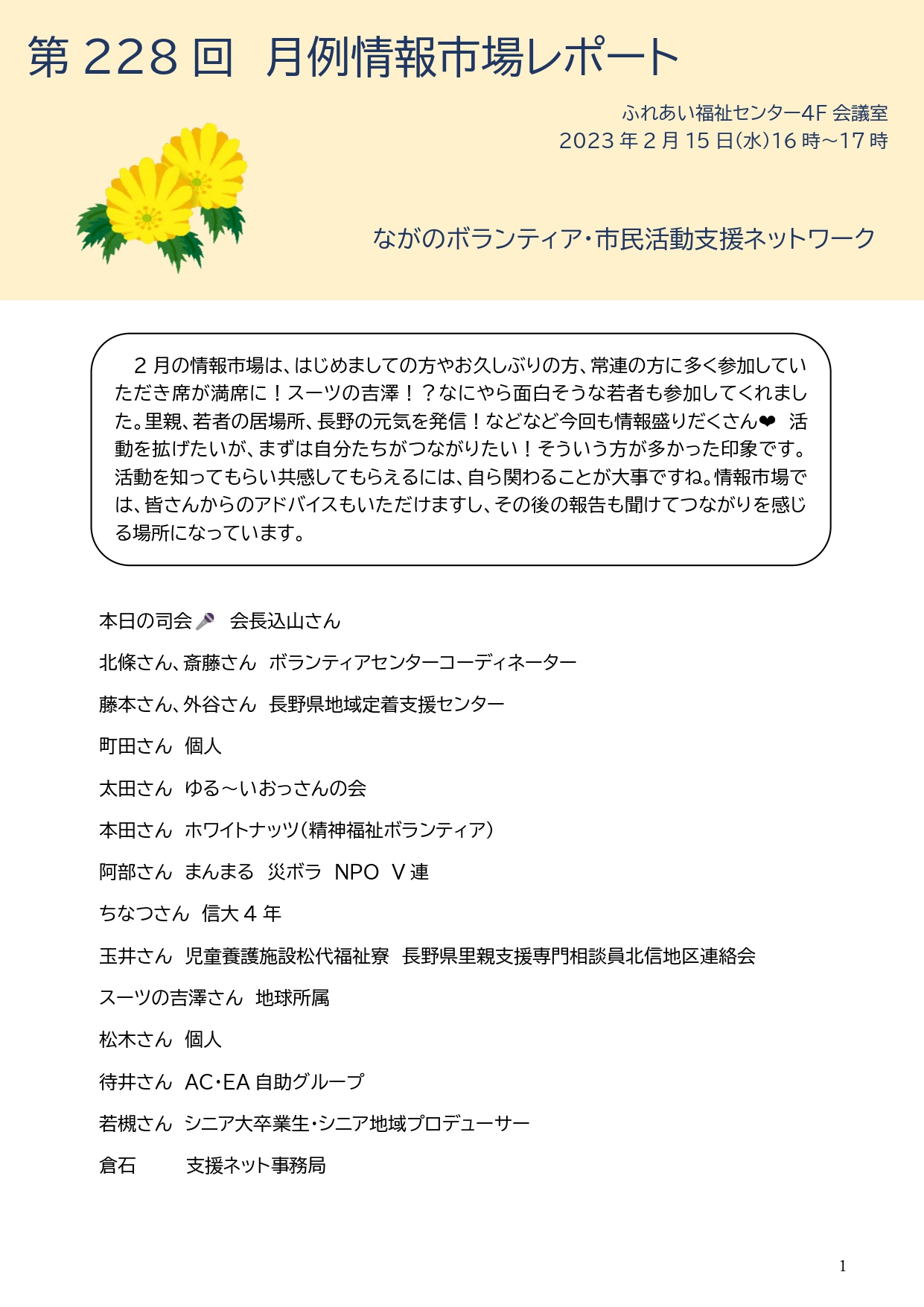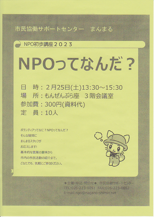 380-0813 長野県長野市緑町1714-5 長野市ボランティアセンター内 TEL 026-227-3707 FAX 026-224-1513 facebook始めました