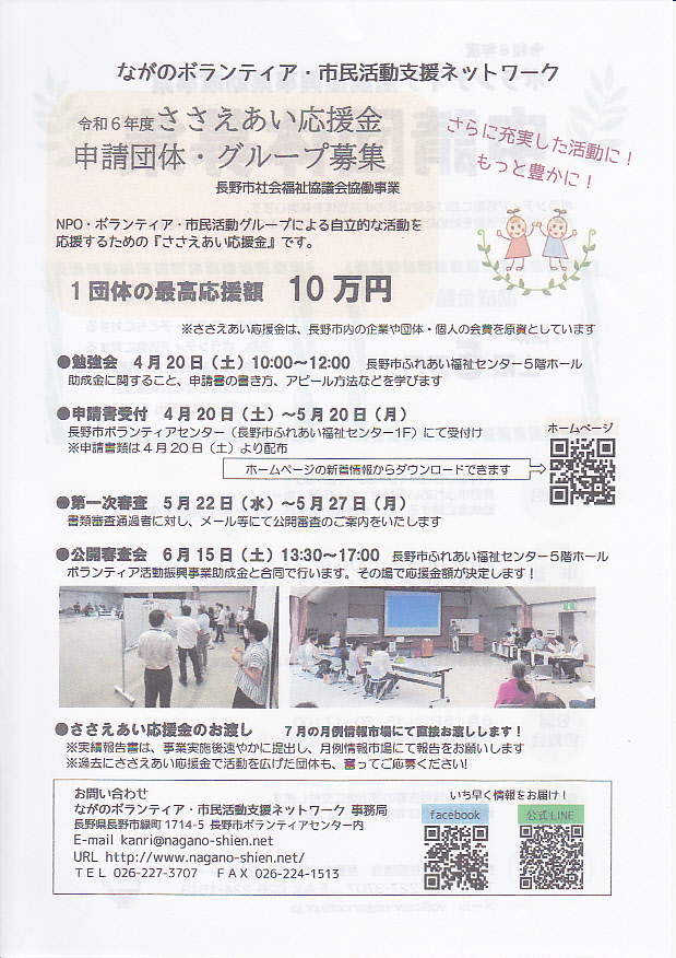 ボランティア募集や活動のPR、地域の困りごとなどお持ちください。