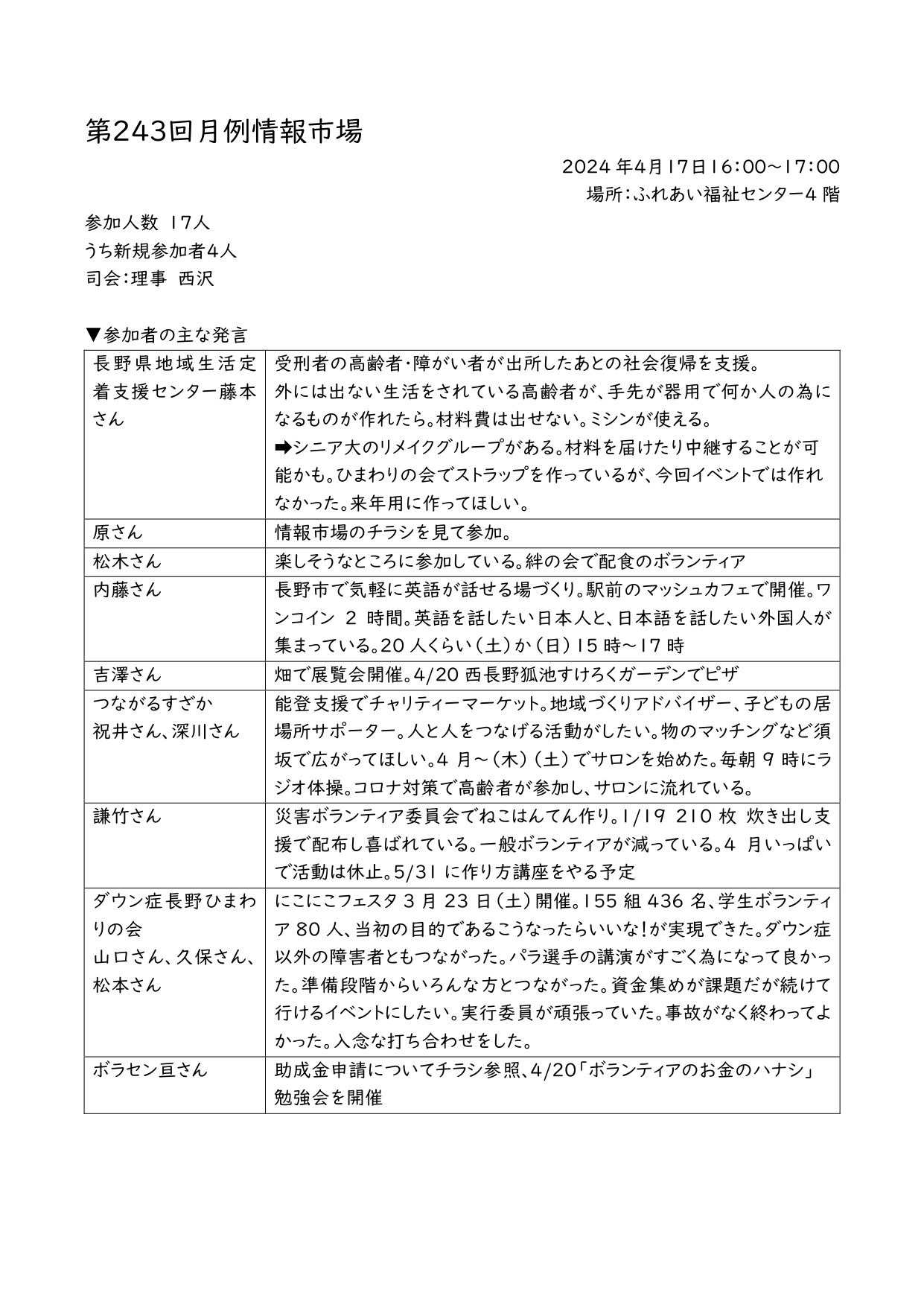 第243回 4月の月例情報市場を開催いたしました