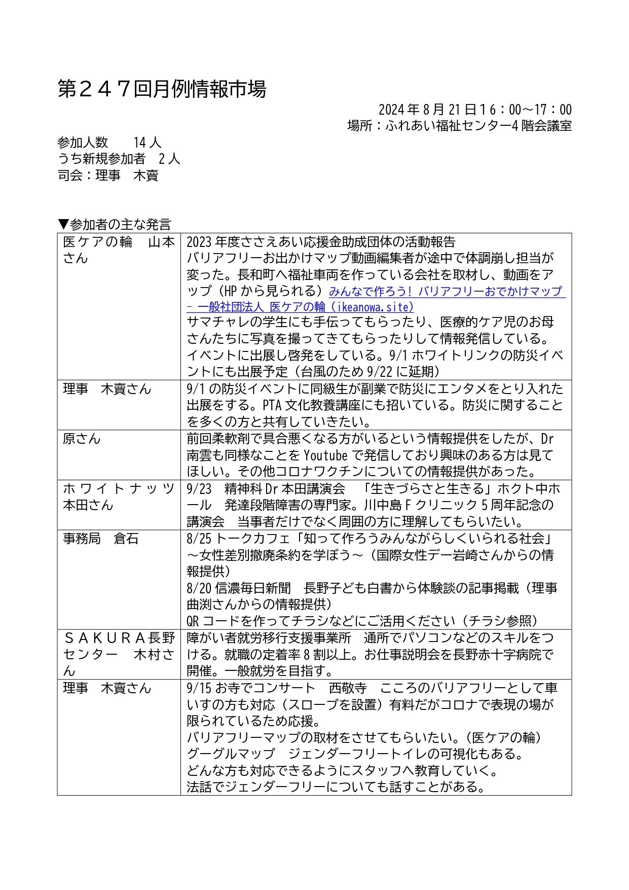 第247回8月の月例情報市場を開催しました