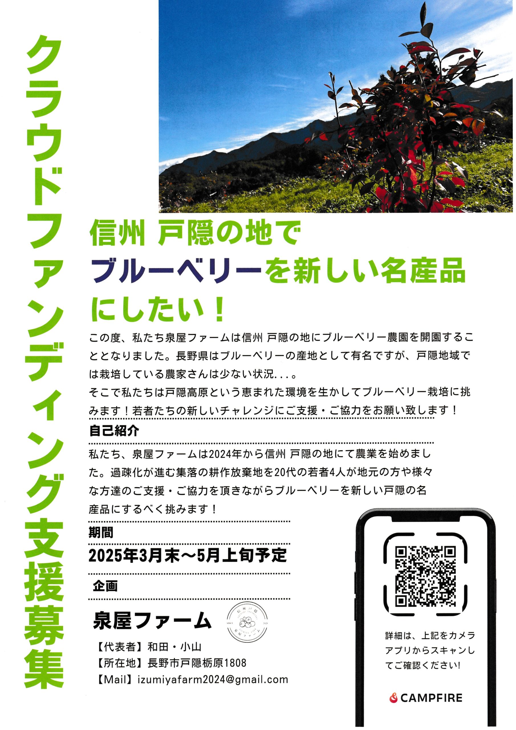 20代若者4人が挑戦!長野市戸隠の過疎地域でブルーベリーを栽培して新たな名産に!(4月公開予定)