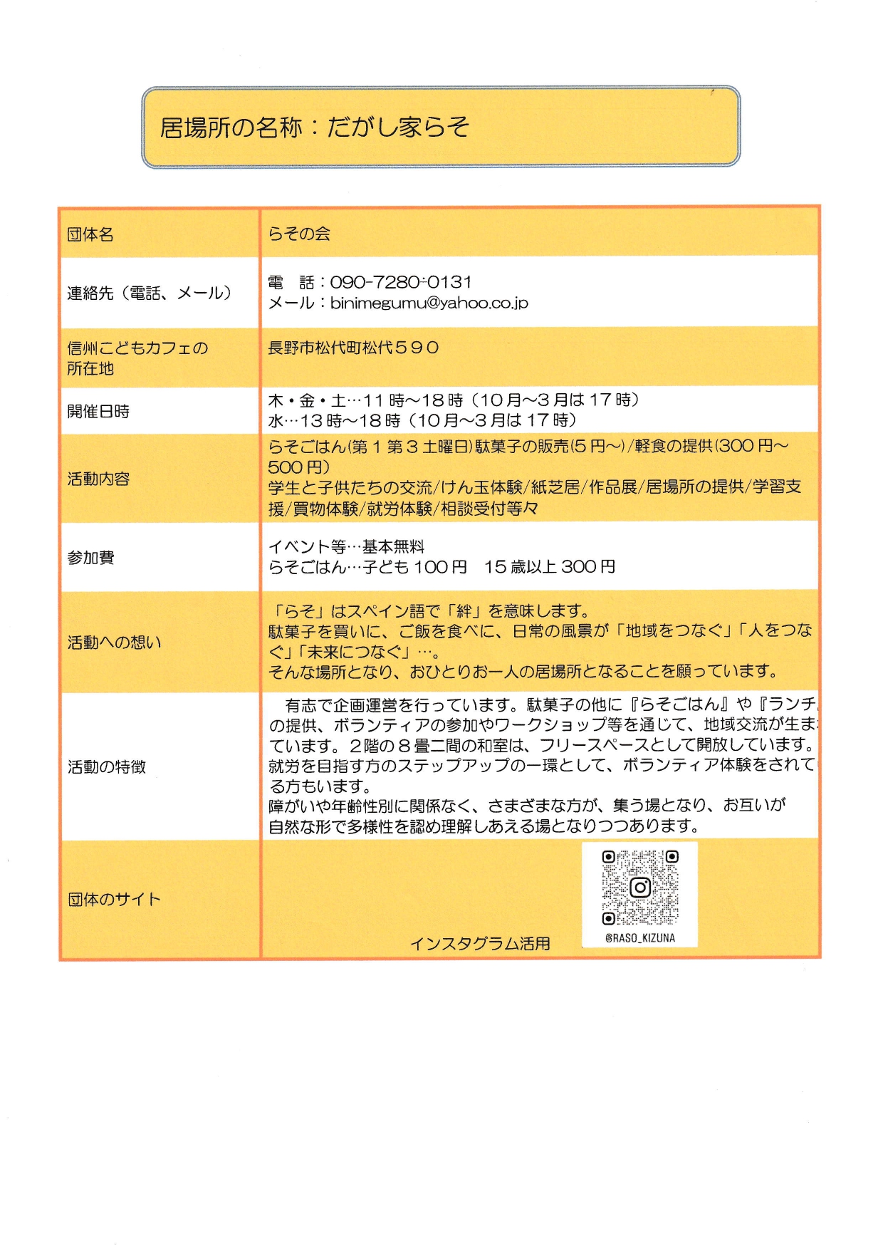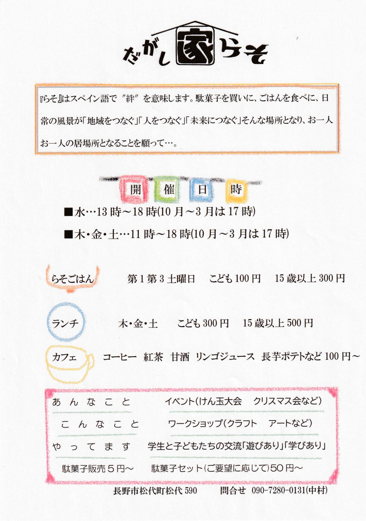 らそはスペイン語で「絆」日常の風景が「地域をつなぐ」「未来をつなぐ」そんな場所となり、お一人お一人の居場所となることを願って・・・。