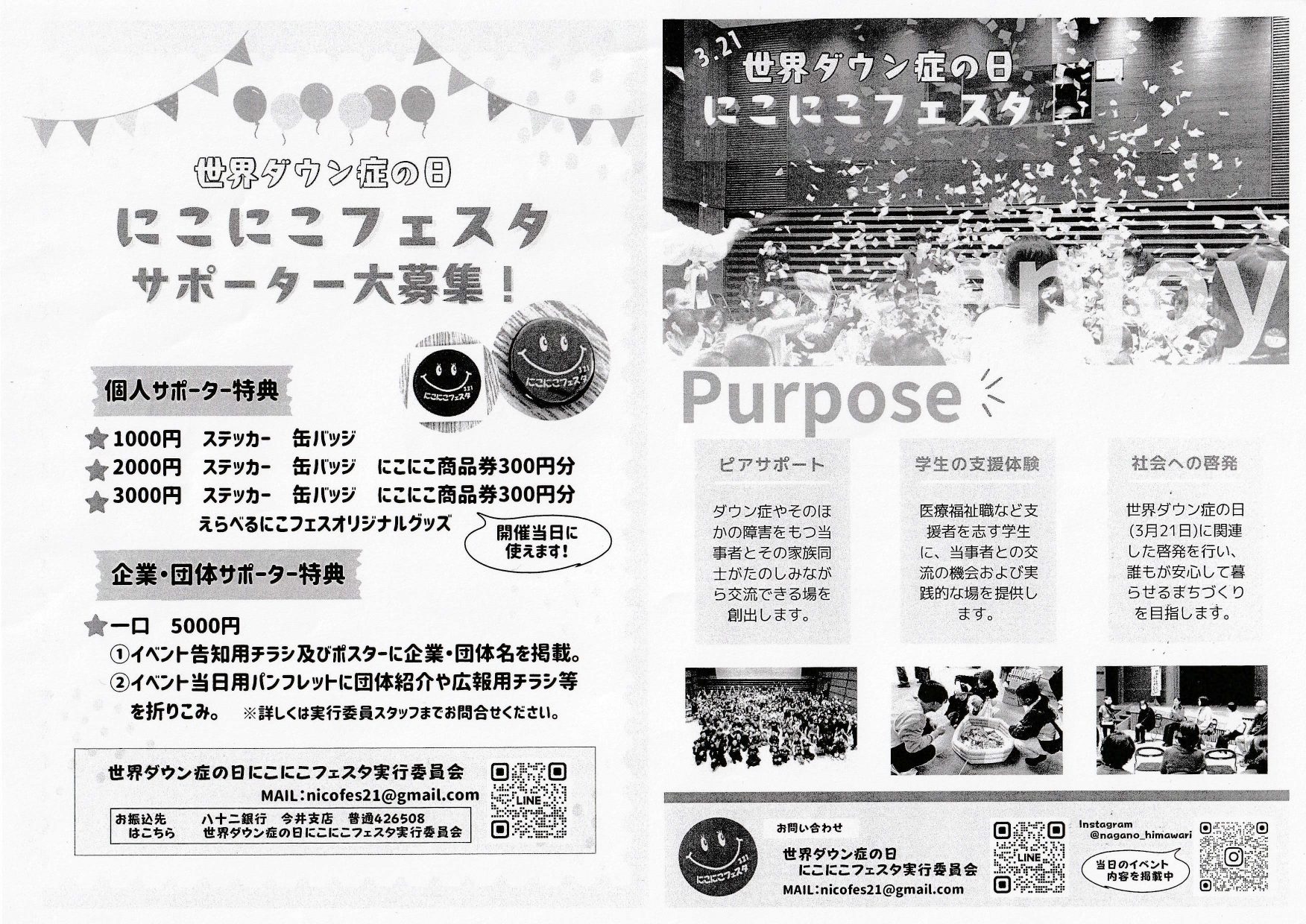 『世界ダウン症の日 にこにこフェスタ サポーター大募集!』