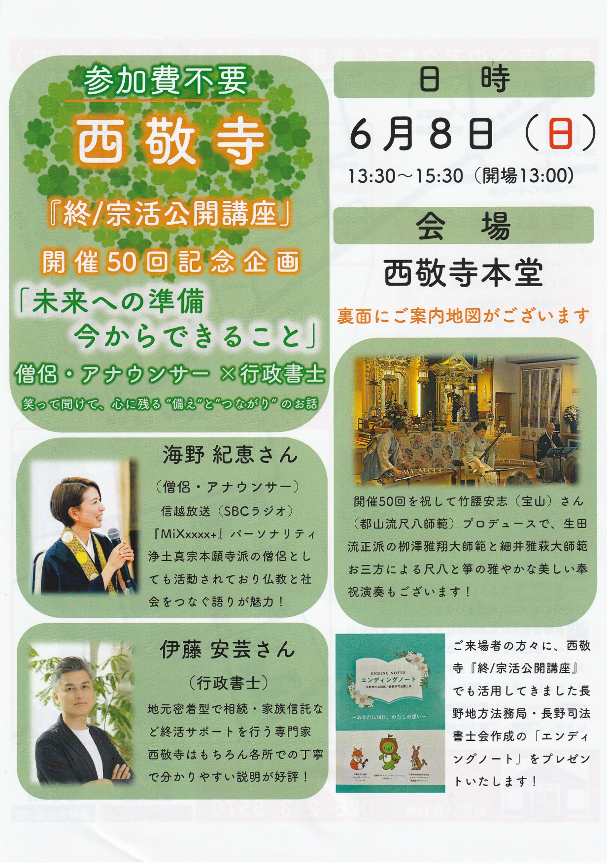 西敬寺『終/宗活公開講座』開催50回記念企画