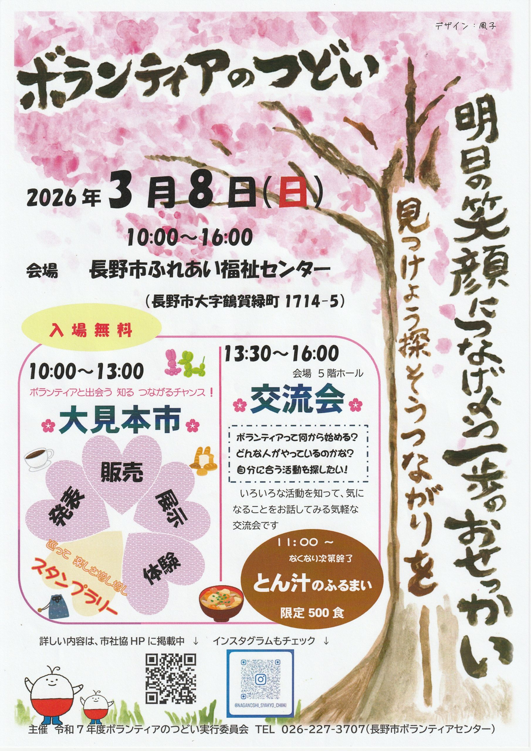 380-0813 長野県長野市緑町1714-5 長野市ボランティアセンター内 TEL 026-227-3707 FAX 026-224-1513 facebook始めました